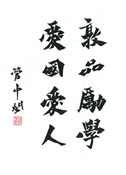 有關校訓的題字,目前可考的始自錢思亮校長,當時是錢校長題於畢業紀念冊上用以訓勉畢業生。自六十六學年起的臺大概況開始有校長的校訓題字,此項做法由閻振興校長開始,之後每學年出版的概況皆有校長的校訓題字,顯示出此八字對臺大師生的重要意義。