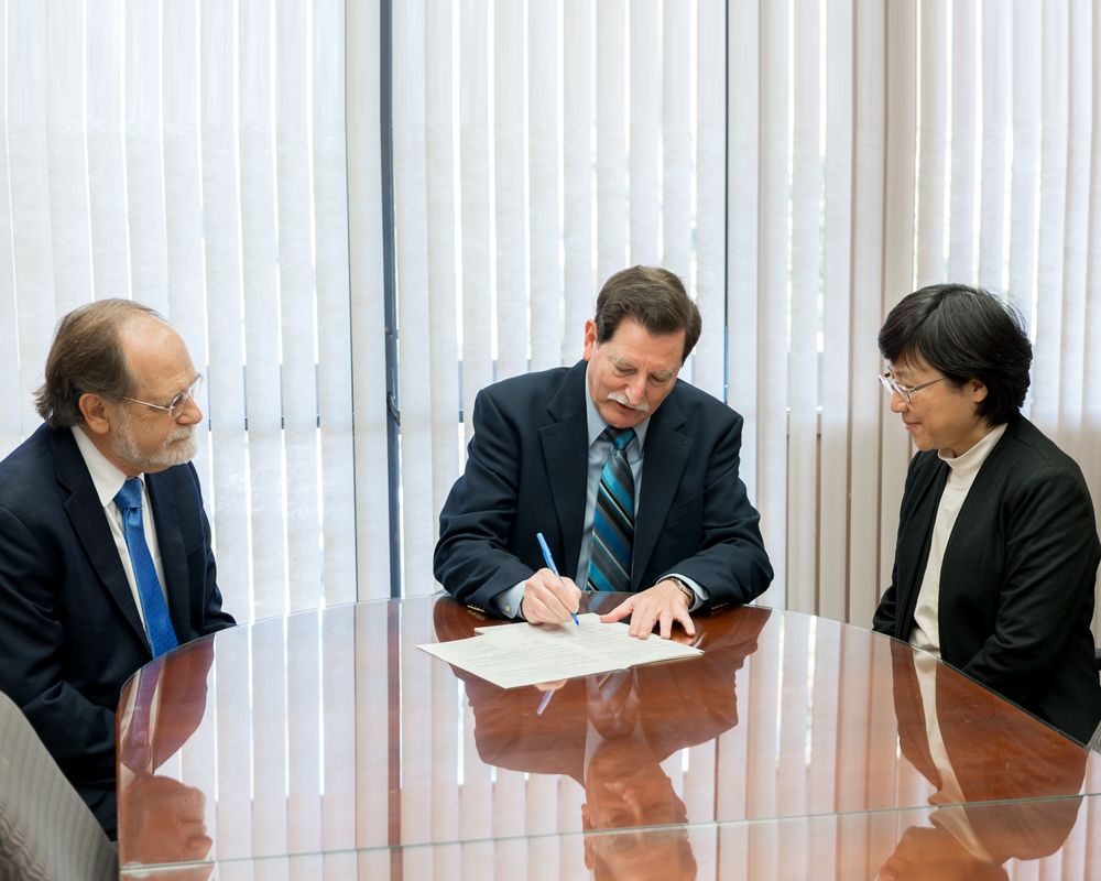 Dr. Geoffrey Cox, president of Alliant International University, Dr. Robert Geffner, president of IVAT, and Dr. Joyce Yen Feng (馮燕), R.O.C. minister without portfolio and advisory committee member of the NTU Children and Family Research Center, were on hand to officiate the signing which took place on the San Diego campus of Alliant International University.
