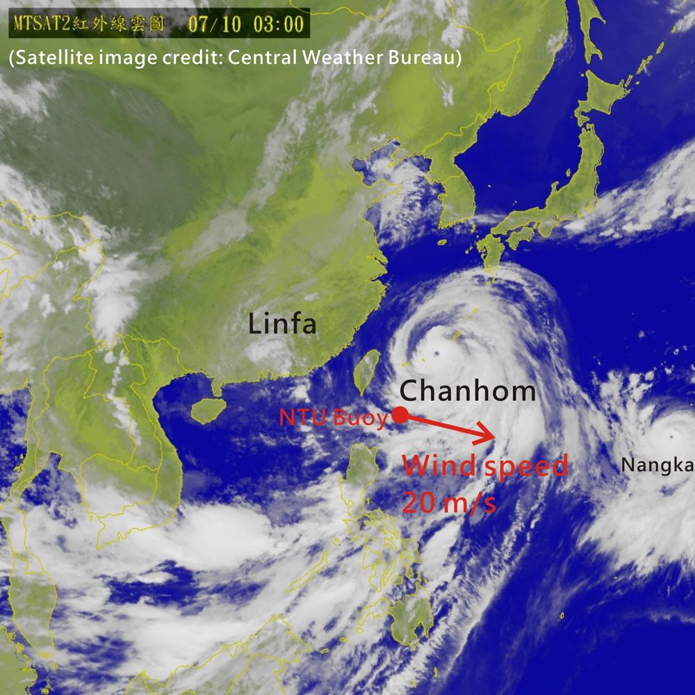 The data buoy, with real-time data transmission functionality, was moored at a "hot" spot for typhoon activity in the western North Pacific and captured Typhoons Linfa and Chanhom in early July.