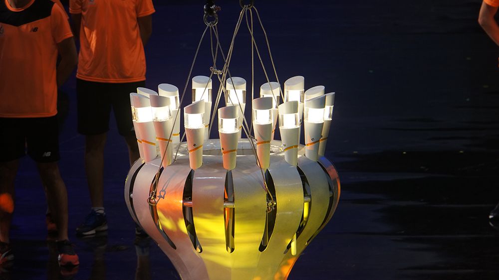 Entrance of student-athletes holding torches