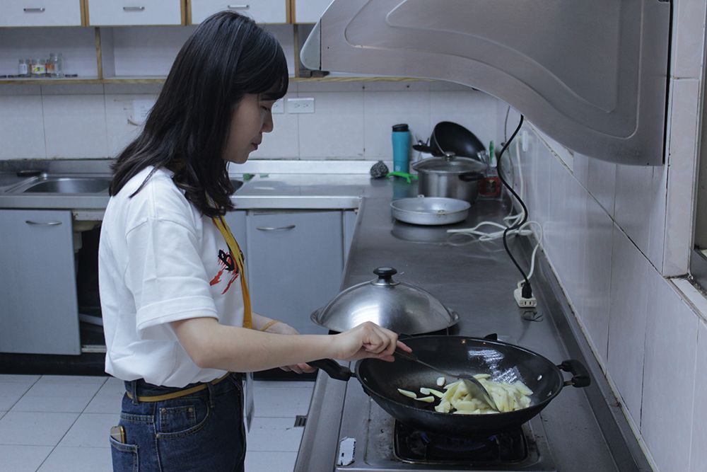 Project team member cooking in a kitchen