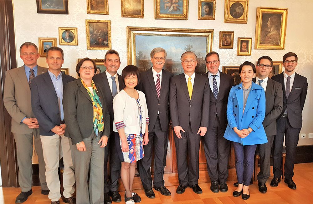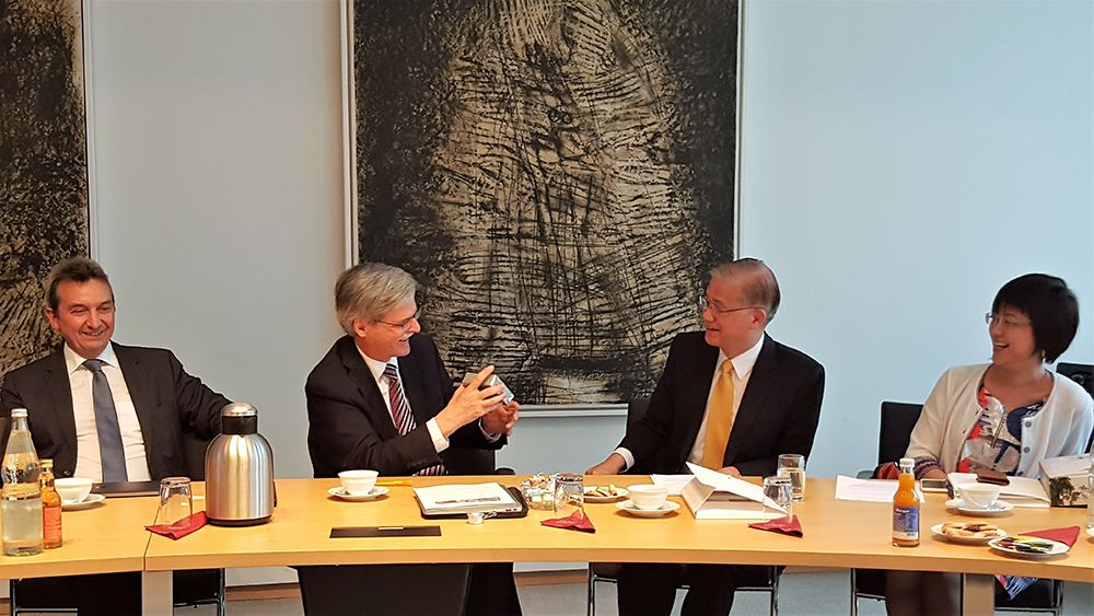 During the visit to Germany, President Yang first traveled to the University of Tübingen with Vice President for International Affairs Luisa Shu-Ying Chang and Director of Global Alliances Section Linda Chang. Since NTU and the University of Tübingen established partnership in 2006, Tübingen President Bernd Engler has visited NTU three times, facilitating exchange of students and faculty members as well as cooperation in fields such as social sciences, law, Mandarin Chinese teaching, sociology, politics, and European Union studies.