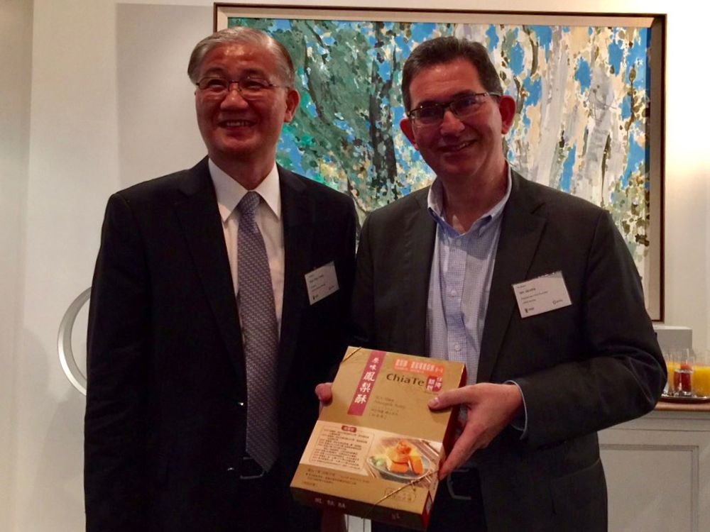 President Yang presenting a box of pineapple cake to UNSW President Jacobs