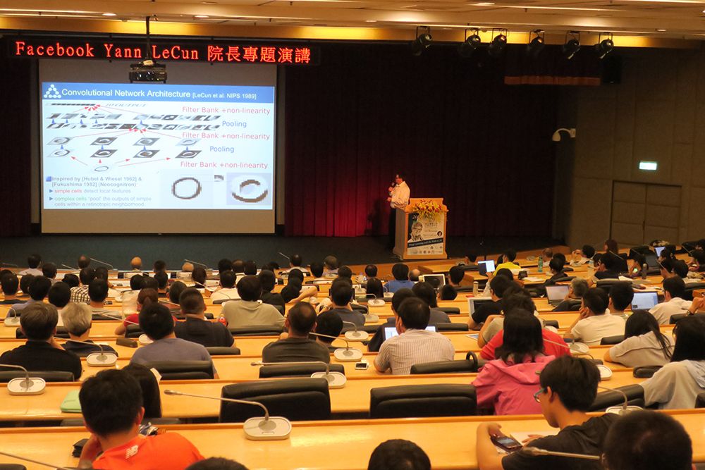 Known as the “father of convolutional neural networks,” Facebook AI Research (FAIR) Director Dr. Yann LeCun came to Taiwan for a 3-day academic visit from June 29 to July 1. On the first day of his visit, Dr. LeCun was invited by the NTU College of Electrical Engineering and Computer Science to give a speech titled “Deep Learning and the Path to AI” at the International Conference Hall of GIS NTU Convention Center. The speech drew more than 400 attendees, and over one thousand people watched the speech online simultaneously. In addition, the speech was streamed live on the Facebook page of the College. The total number of views has accumulated to nearly 50,000. In the speech, Dr. LeCun introduced and explained the history of AI deep learning and its future challenges.