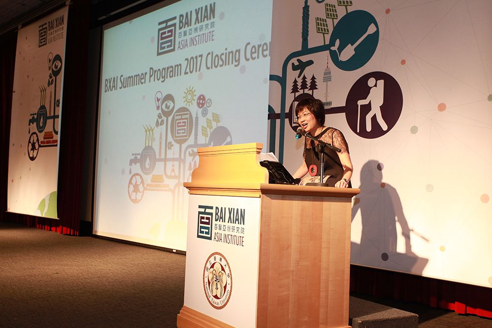At the closing ceremony, Vice President for International Affairs, Prof. Luisa Shu-Ying Chang, encourages BXAI students to change the world through innovation.