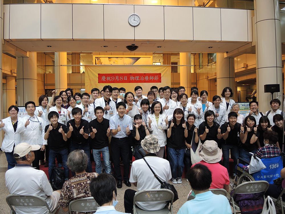 Physical therapists and event participants celebrate World Physical Therapy Day at NTUH.