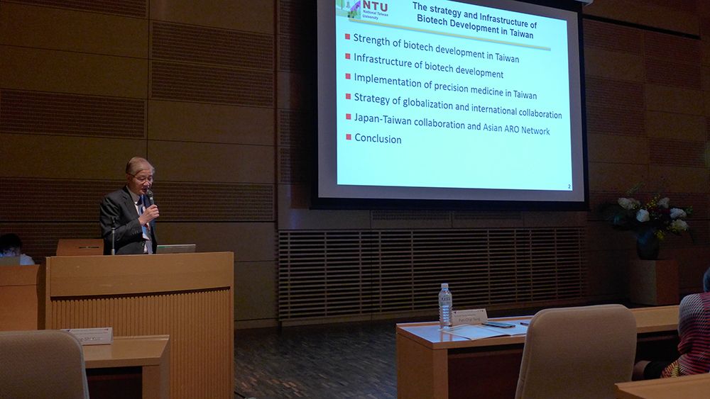 The annual gathering opened with welcome remarks from Zhong-Xi Guo (郭仲熙), Deputy Director of the Taipei Economic and Cultural Representative Office in Japan. To kick off UTsukuba’s “International Taiwan Studies,” NTU’s Former President Pan-Chyr Yang (楊泮池) gave a plenary speech on “The Strategy and Infrastructure of Biotech Development in Taiwan” to share the development of biotechnology and translation medicine in Taiwan. Former President Yang’s comprehensive analysis on Taiwan’s recent advanced medical research and biotechnology impressed the audience, including the presidents of Pohang University of Science and Technology (Korea) and the University of Chile.