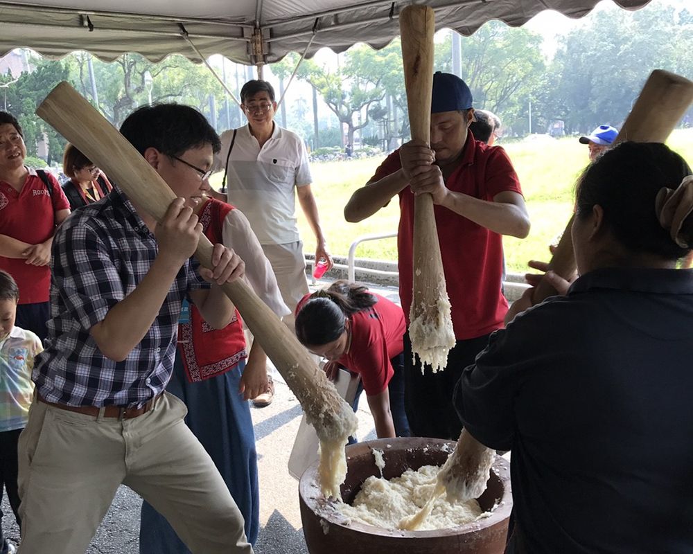 After visiting the exhibition, the Saisiyat tribe members prepared sticky rice cake (“tinawbon”) and water-boiled pork (“ayam”) for everyone. Many guests joined the activity of sticky rice pounding. The museum also prepared an abundance of snacks for all the guests and attendees, hoping that everyone had an enjoyable and wonderful afternoon.