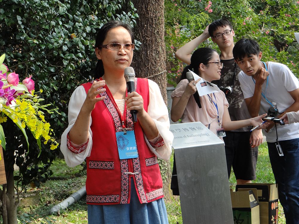 The exhibition, “Weaving the Ancestral Pattern (“tinon noka tatini’ ka hinobaang” in Saisiyat): In Search of a Hundred Years of Saisiyat Clothing,” organized by the NTU Museum of Anthropology opened on September 22. The opening ceremony was held in front of the museum. As if blessed by the ancestral spirits, the afternoon that day was sunny and clear, relieving museum staff of their worry over the previously overcast weather.