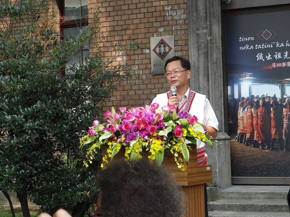 Director of the Department of Anthropology Kai-Shih Lin addressed the guests at the opening ceremony of the Saisiyat clothing exhibition.