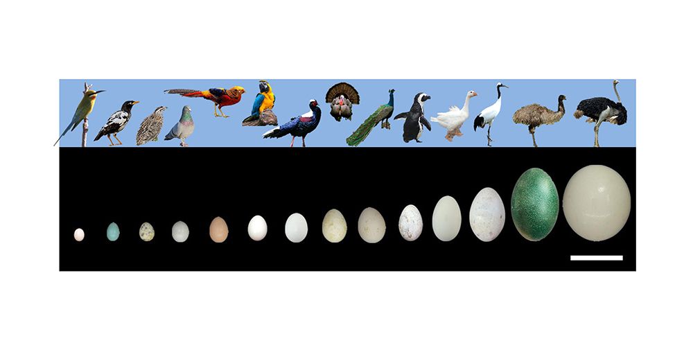 Birds comprise over 10,000 living species, and exhibit an extraordinary diversity in morphology, behavior, and lifestyle traits such as diet, developmental mode, breeding system, and nest type. Modern birds coexisted with nonavian dinosaurs (hereafter “dinosaurs”) during the late Cretaceous period. The dinosaurs were wiped out by the K-Pg mass extinction 66 million years ago, whereas birds not only survived but spread and flourish in every terrestrial habitat on earth. In contrast to the slow incubation (up to 5.8 months) of dinosaurs, such as ornithischian taxa, birds lay relatively small numbers of large eggs with very short incubation periods, ranging from approximately 11 days (e.g., common cuckoos) to 77 days (e.g., wandering albatrosses). Short incubation periods, partially enabled by “contact incubation,” increase survivability by limiting the egg’s exposure to predation and environmental disturbances. However, during contact incubation, the eggshell must be stiff and strong enough to withstand the weight of the incubating bird and the possible impact between eggs, yet weak enough for the chick to break out at hatching. There exist design trade-offs that must be balanced.