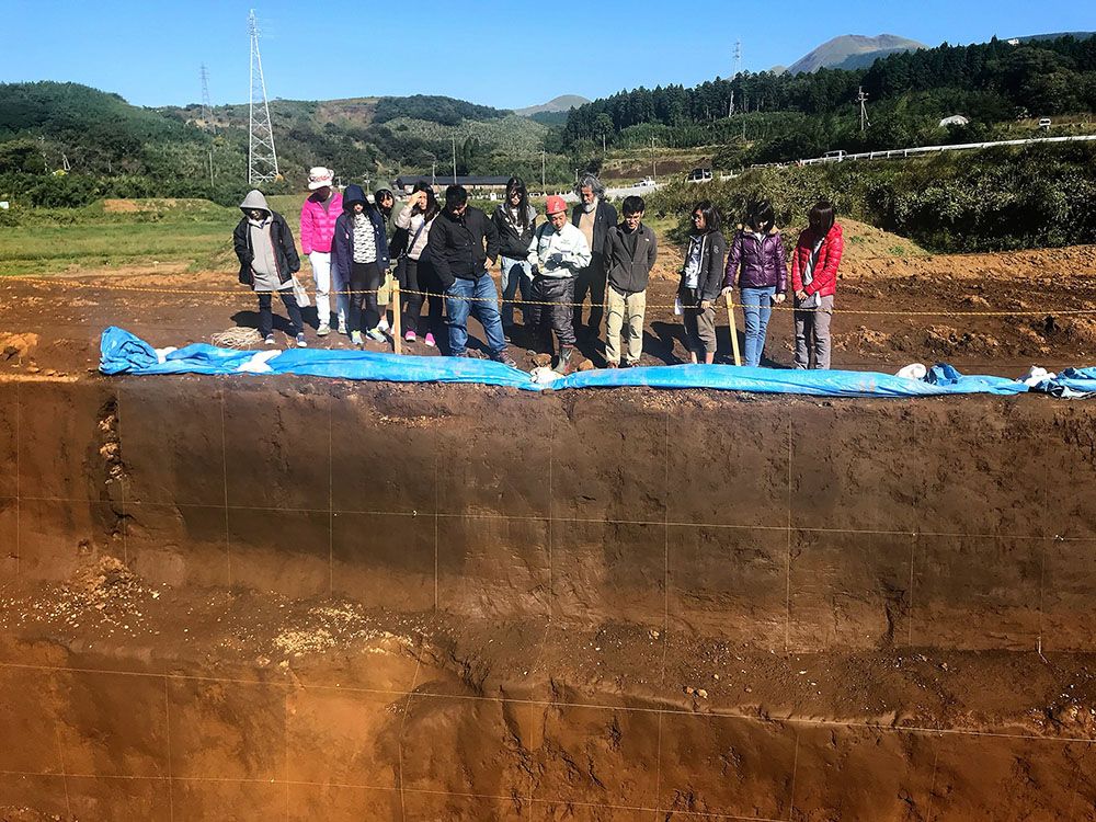 Students and instructors of the joint field course visited the trench site for studying the seismogenic fault of the Kumamoto earthquakes.
