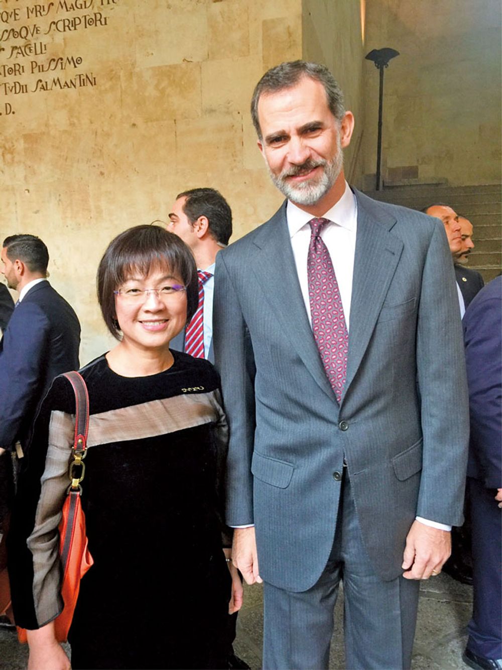 Invited by the Spanish Royal Academy, NTU Vice President for International Affairs Luisa Shu-Ying Chang (張淑英) traveled to Spain to celebrate the launch of the newly published Hispanic Judicial Dictionary (Spanish: Diccionario Panhispánico del Español Jurídico) and the University of Salamanca's 8th centenary event, both chaired by King Felipe VI of Spain on December 15, 2017.
