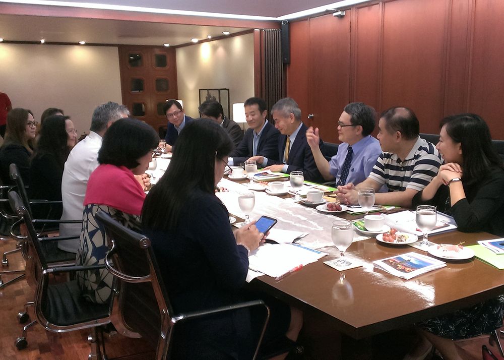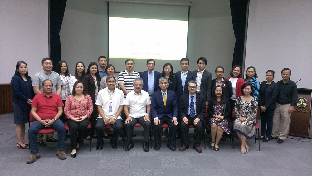 The NTU delegation members exchange opinions with SEARCA experts and scholars at the meeting.