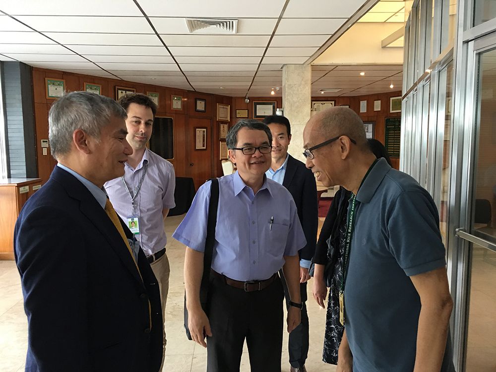 IRRI Principal Scientist Dr. Hei Leung (first from right) welcomes the NTU delegation. Second from left is Mr. Oliver Frith.