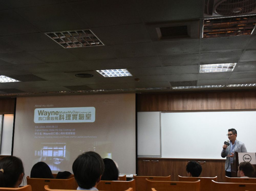 The second speaker was Wayne Lin, founder and chef of Make My Day Cooking Lab. Wayne talked about his main target customers ranging from tourists to Japanese wives living in Taiwan as well as the main courses he offers, including traditional Taiwanese dishes and Italian dishes. He shared that he is close to maxing out at his current capacity and hopes to begin selling some of his own products at his location to pair alongside his cooking classes.