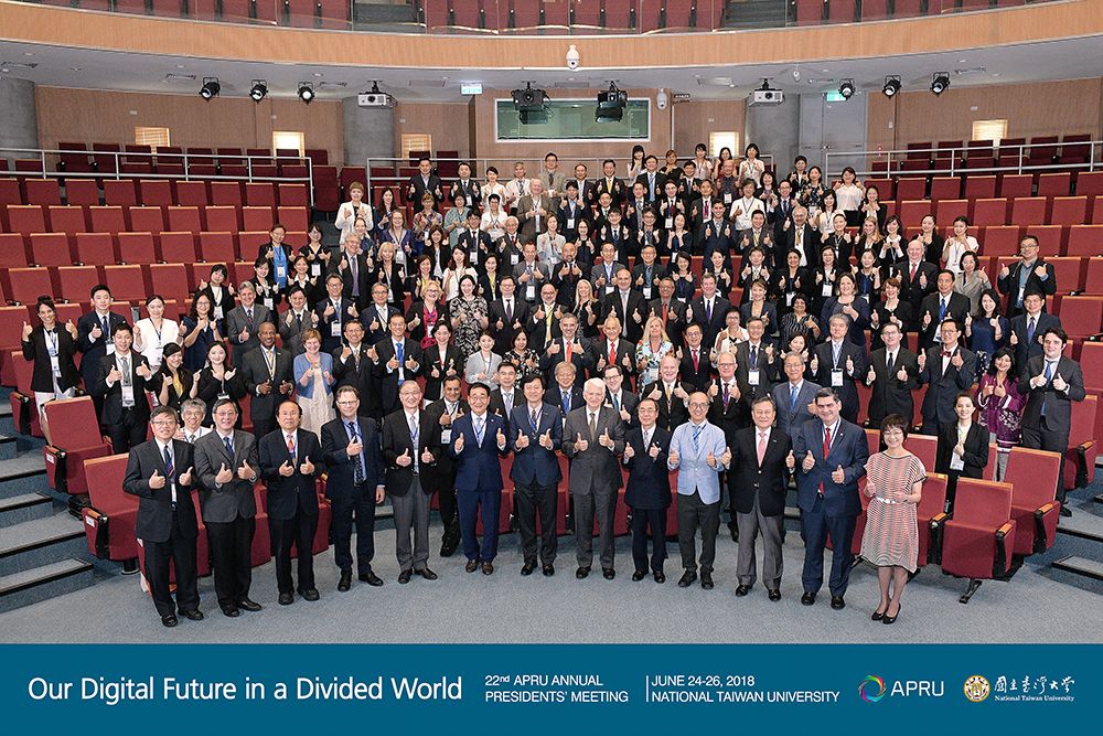 The Association of Pacific Rim Universities (APRU) is a consortium of leading research universities around the Pacific Rim. One of its highlights every year—the Annual Presidents’ Meeting (APM), hailed as a major education summit of the world—was hosted by National Taiwan University (NTU) in 2018. From June 24 to 26, a total of 111 higher education leaders and administrative professionals, including 27 presidents and 40 executive vice presidents and vice presidents for international affairs, from 39 universities in 14 countries gathered in Taipei to address the worldwide challenges posed by our fast-changing information society.