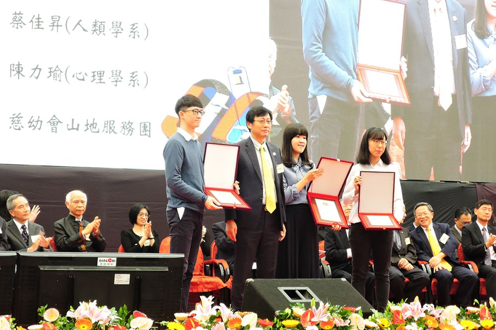 One of the highlights at the ceremony was the recognition of the eight winners of the Distinguished Alumni Awards: Ching-Hsi Perng (彭鏡禧), Norden E. Huang (黃鍔), Burn J. Lin (林本堅), Andrew H.-J. Wang (王惠鈞), Yuan-Tsong Chen (陳垣崇), Chin-Tsai Fan (范進財), Liang-Jun Han (韓良俊), and Andrew K. C. Chan (陳嘉正). Three Social Devotion Special Awards (two individuals, one group) were respectively conferred to student of anthropology Chia-Shen Tsai (蔡佳昇), student of psychology Li-Yu Chen (陳力瑜), and NTU Shanfu. Moreover, 17 Outstanding Youth Awards were conferred at the ceremony.