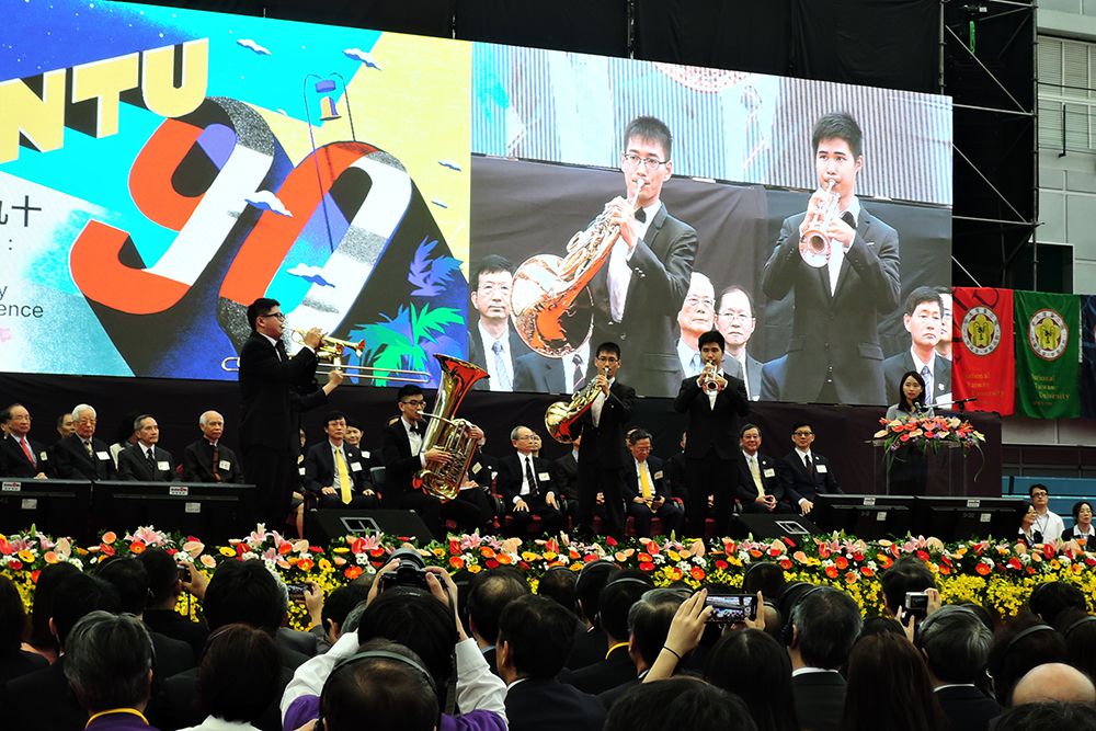 The 90th Anniversary Celebration Ceremony was held in the NTU Sports Center on November 15. The event was presided over by NTU Interim President Tei-Wei Kuo (郭大維), and attended by former presidents, top administrators, alumni in Taiwan and abroad, international guests from partner universities, and NTU staff and students. President Kyosuke Nagata (永田恭介) of Tsukuba University and President/Vice-Chancellor Bernd Engler of the University of Tübingen were invited to give remarks at the ceremony.
