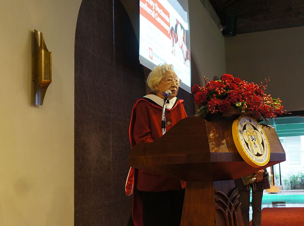 NTU campus received a rare visitor on February 25, 2019. Emeritus Prof. Pang-Yuan Chi (齊邦媛)—a distinguished writer, educator, translator, and scholar who wrote the masterpiece and best-seller “The Great Flowing River” in 2009, graced the campus to receive an honorary Doctor of Letters degree from Indiana University (IU) Bloomington.