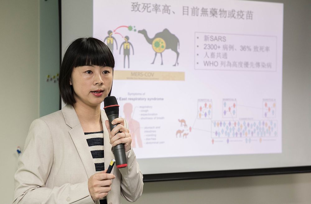 Associate Prof. Hui-Wen Chen at NTU’s Department of Veterinary Medicine presents the research results at the press conference.