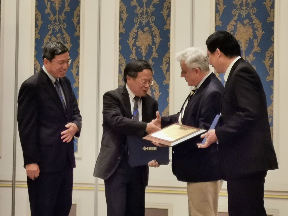 Prof. Ching-Ray Chang receives the award plaque on behalf of the team.