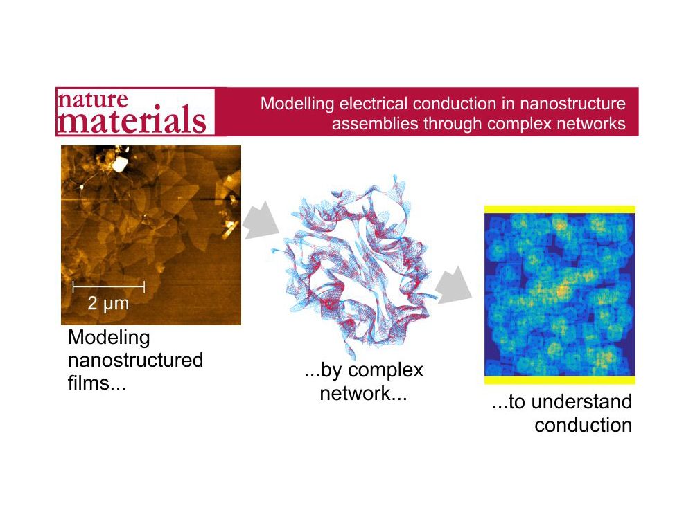 Instead of describing the nanomaterial as patterned in shape to predict conduction, the team introduced a simple and universal method to convert the nanostructure into a complex network with arbitrary connectivity similar to the connections in the brain or links among websites. The links among materials and networks were made by breaking each flake into hundreds of pieces and giving each piece a resistance. This facilitated calculation with the help of a software that had been developed to predict animal migration patterns. Even without programming experience, this approach allowed researchers to capture the complexity of many nanomaterials.