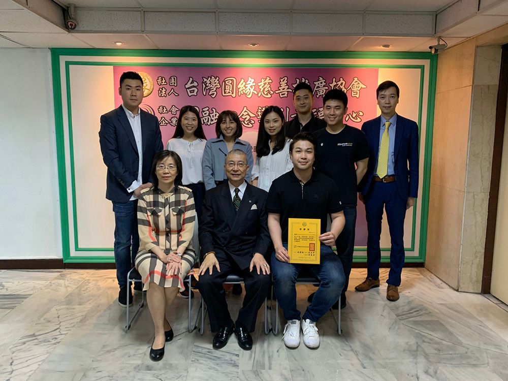 GMBA Student Council members take a group photo with Chairman of the Yun Yun Charity Promotion Association.