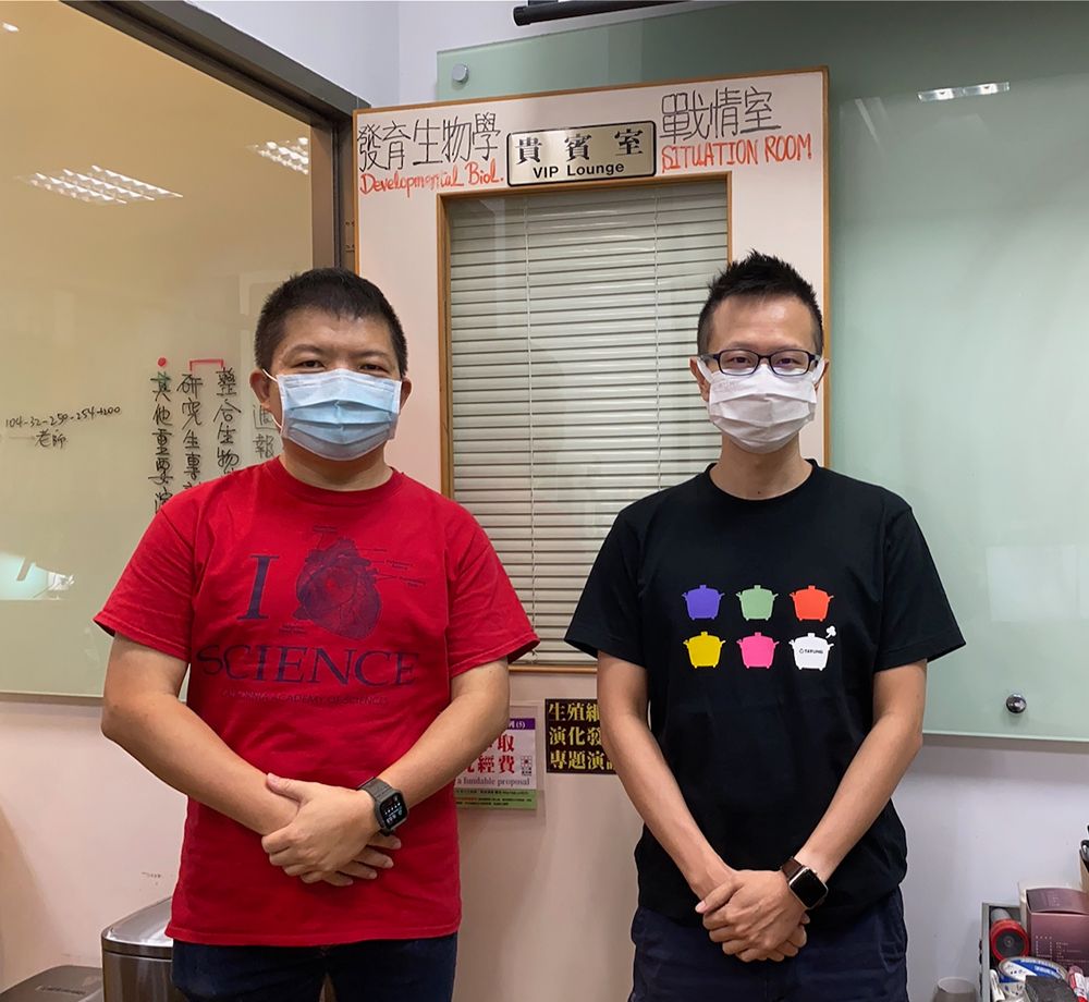 Scientists working on aphid development. Dr. Chen-yo Chung (right) and Prof. Chun-che Chang (left) at a corner of the new LGD.