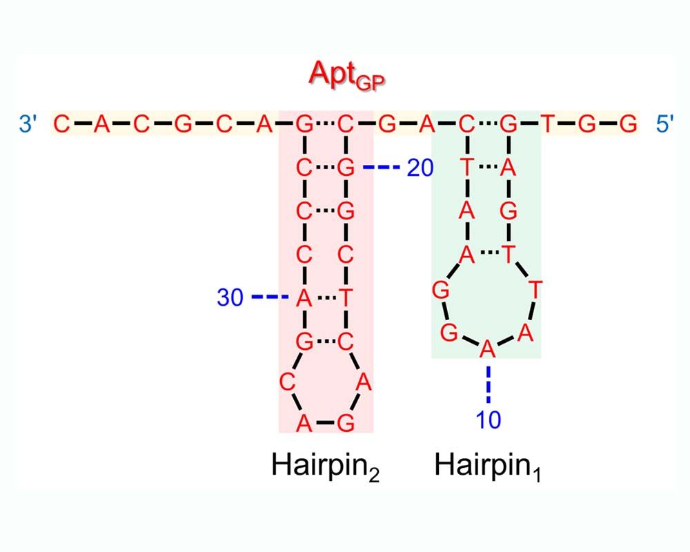 Selected by the SELEX method, the DNA aptamer (AptGP) that binds to the glycated peptide of HbA1c is a 40-base, single-stranded DNA.