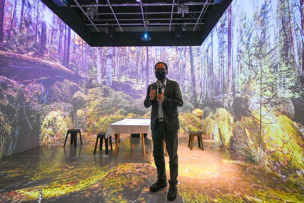 An avant-garde immersive experience presented by NTU’s College of Electrical Engineering and Computer Science (EECS), College of Bioresources and Agriculture (BICD), and the Department of Drama and Theatre was unveiled at the Future Exhibition Hall in August. Experimenting with virtual images, immersive technologies, arts, and education, the experience allowed students to admire art while exploring a virtual forest world.