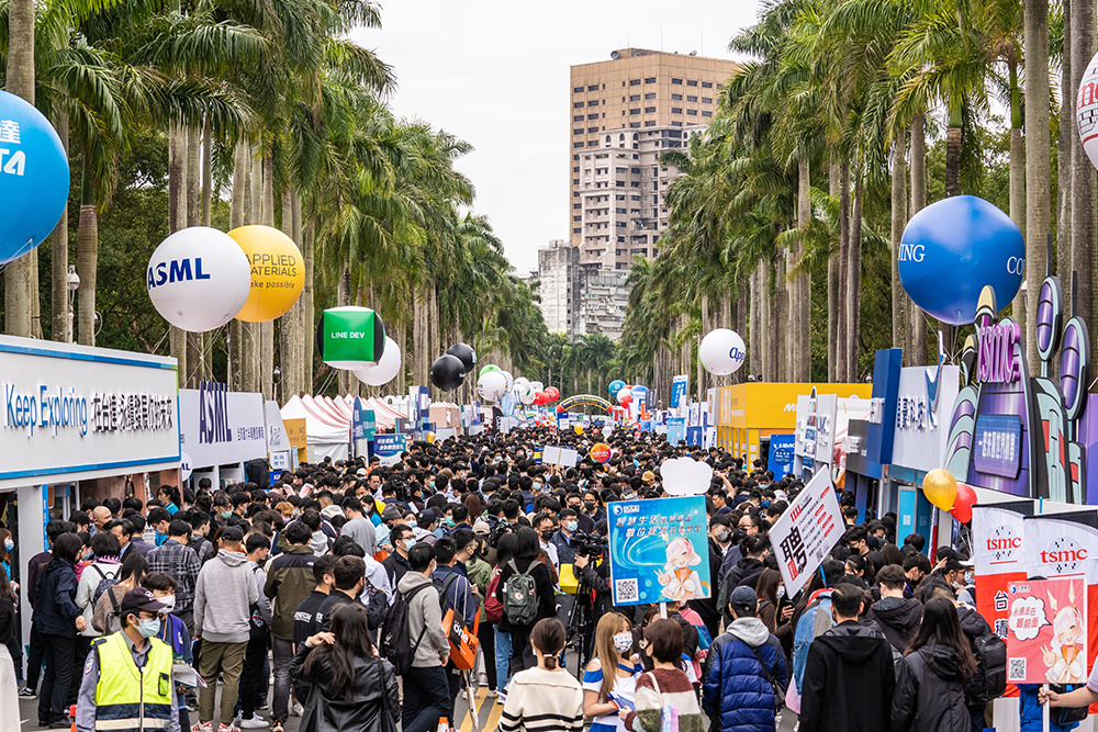 VISION 2023 NTU Campus Recruitment Fair kicked off grandly on March 4. This year, about 310 companies participated, with 448 booths set up at the physical exhibition. This year’s fair was divided into seven sections: Information Technology, Finance, Corporate Groups, Diversified Industries, Human Resources, NTU Start-ups, and International Talent Training. The “NTU Start-ups” and “International Talent Training” sections were especially added to the fair to provide students from home and abroad with more diversified and international career options. From March 7 to 24, 73 companies will give presentations at the Company Info Session, and five company visit sessions will be held at registered companies.