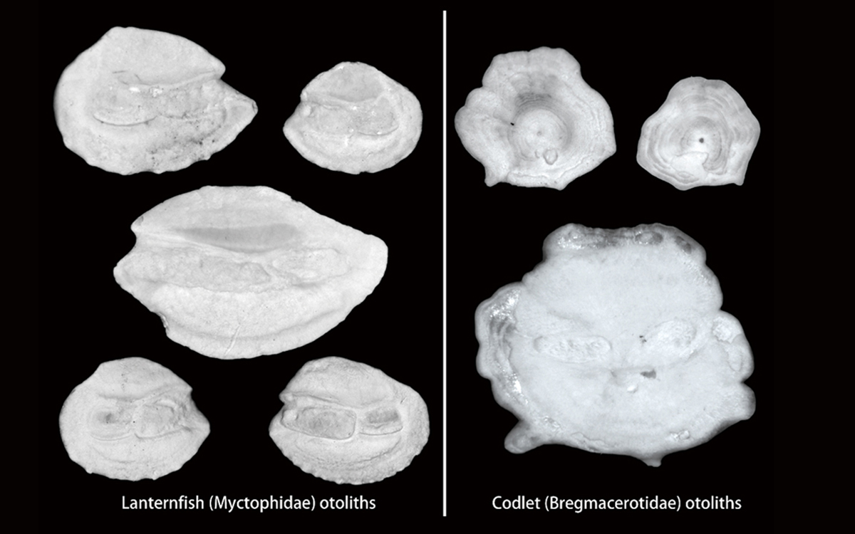 Figure 1. The most abundant fish otoliths found in ODP 1115B, a deep-sea core from the Solomon Sea.