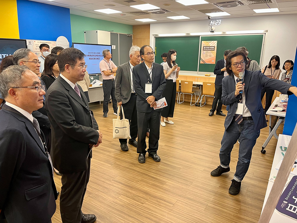 NTU’s Vice President for Academic Affairs and Director of the initiative office, Hong-Jen Wang, introduced the "Future University Promotion Base." The initiative office combines NTU’s Center for General Education, Center for Teaching and Learning Development, Digital Learning Center, and Academic Advising Office as essential foundations for further advancing the Future University Initiatives. NTU’s team presented critical projects on-site, including College-level and University-level Interdisciplinary Bachelor’s Programs, Trans-disciplinary Bachelor Degree Program, Specialization Program, NTU AR (Alumni Return & Recharge), Future Classroom, and NTU Academic Advising Office.