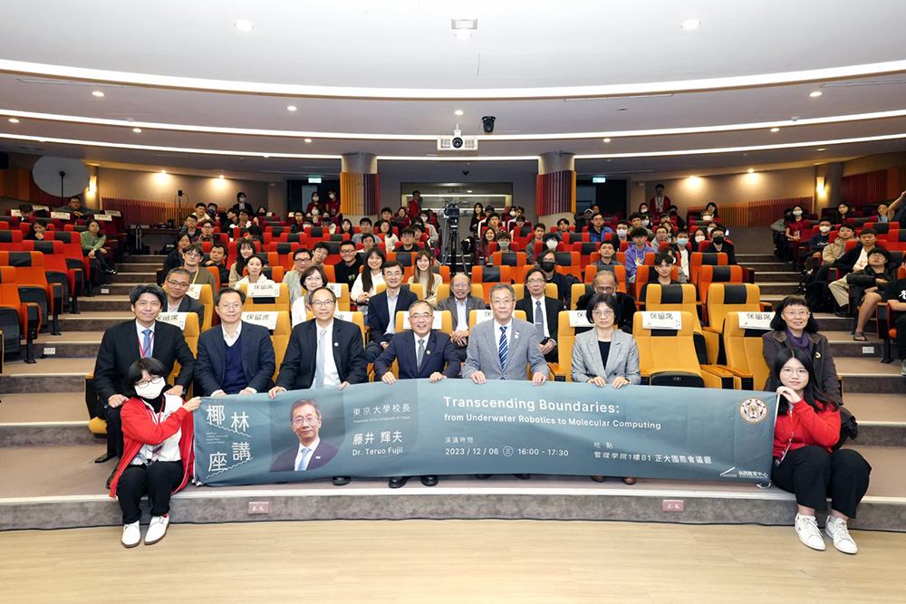 On December 6, 2023, for the third lecture of the Royal Palm Lecture Series, National Taiwan University (NTU) had the honor of inviting Dr. Teruo Fujii, an acclaimed engineering expert and the incumbent president of the University of Tokyo (TokyoU), to speak at NTU College of Management. Through the speech titled “Transcending Boundaries: from Underwater Robotics to Molecular Computing,” President Fujii encouraged NTU students not to fear exploring or tapping into uncharted territory but instead seek ways to put their learned skills into practice and “embrace the unknown.”
