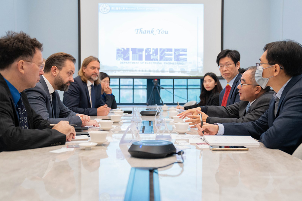 Director of the Saxony State Ministry of Science and Culture, Dr. Sebastian Gemkow and his Chief of Staff, Dr. Michael Schmischke, visited NTU on January 24, along with Dr. Josef Goldberger, the head of the Saxony State Ministry of Science and Culture's Taiwan Office. They were warmly received by President Wen-Chang Chen, Associate Vice President for International Affairs Prof. Jiun-Haw Lee, and Chair of the Department of Electrical Engineering, Prof. Chien-Mo Li.