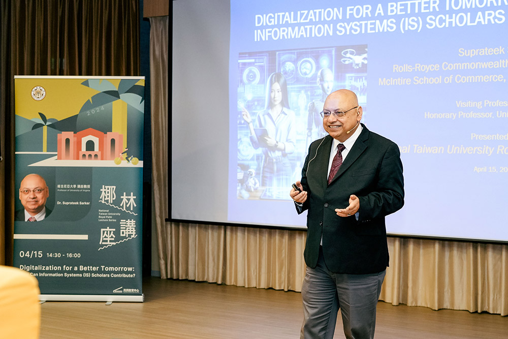 On April 15, 2024, the NTU Royal Palm Lecture Series had the privilege of having world-renowned Information Systems scholar and AIS Fellow—Prof. Suprateek Sarker to give a speech titled “Digitalization for a Better Tomorrow: How Can Information Systems (IS) Scholars Contribute?” Prof. Sarker touched on the impact of digitization on society, how to balance its benefits and risks, and how to ensure the future is in alignment with our social and educational goals.
