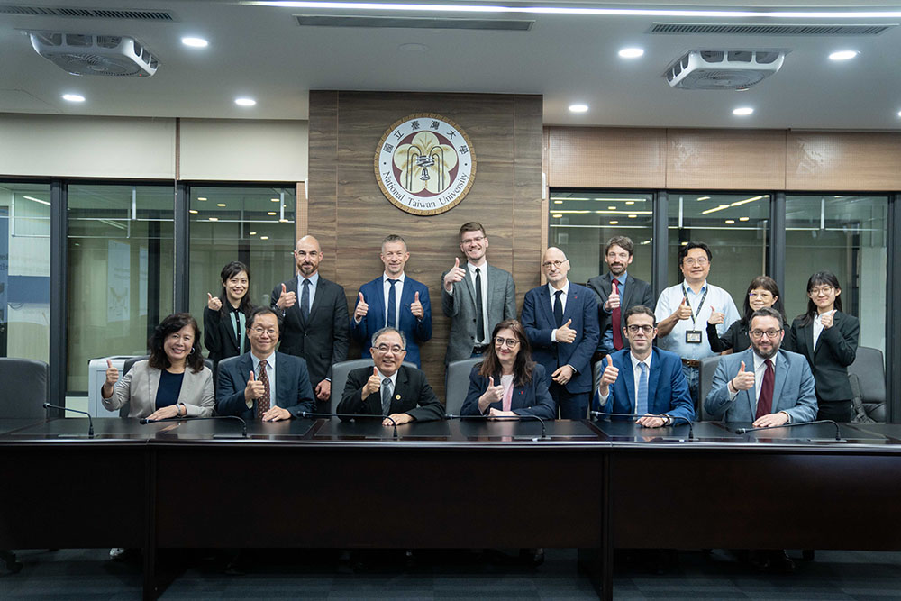 A delegation led by Ms. Claire Giry, Director General of Research and Innovation at the Ministry of Higher Education and Research (MESR), visited National Taiwan University (NTU) with representatives from top French research institutes including The French National Centre for Scientific Research (CNRS), French National Institute of Health and Medical Research (INSERM), and the French Alternative Energies and Atomic Energy Commission (CEA), among others. They were warmly welcomed by President Chen and explored NTU’s research achievements and international collaboration projects.