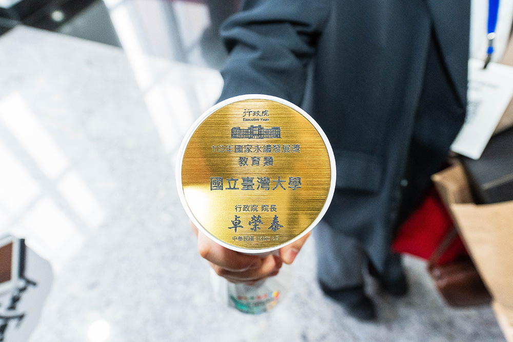 National Taiwan University (NTU) has embraced the sustainability mission both on campus and in society, actively addressing critical global issues such as climate change and sustainable development. This year, NTU was honored with the 2024 “National Sustainable Development Award” by the Executive Yuan. This prestigious recognition not only affirms NTU's achievements in sustainable governance but also highlights its outstanding influence among higher education institutions. The award ceremony took place on December 19, 2024, with Premier Jung-Tai Cho presenting the award and Executive Vice President Shih-Torng Ding accepting it on behalf of NTU.