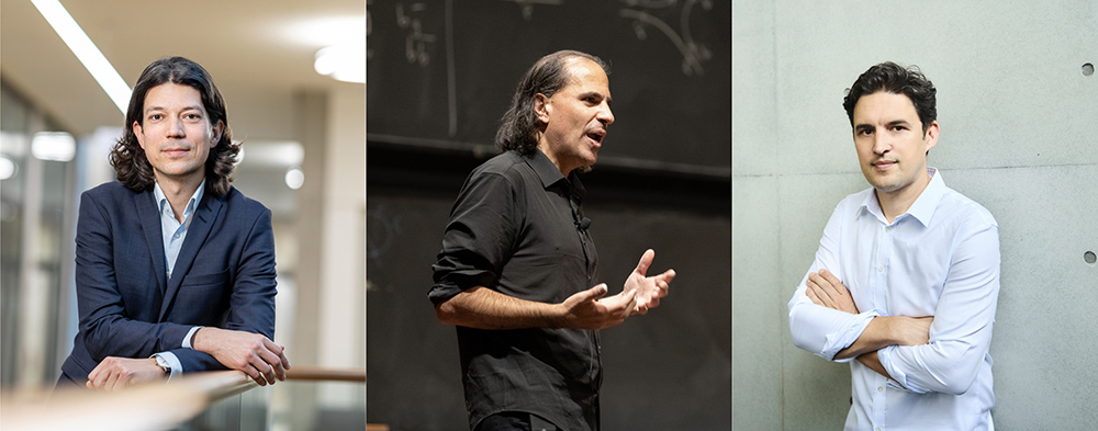 Johannes Henn (left), Nima Arkani-Hamed (middle), and Daniel Baumann (right), Co-Directors of the Max Planck-IAS-NTU Center for Particle Physics, Cosmology, and Geometry. Photo Credits (left to right): A. Griesch (MPP), Maria O’Leary (IAS), Julian Baumann.