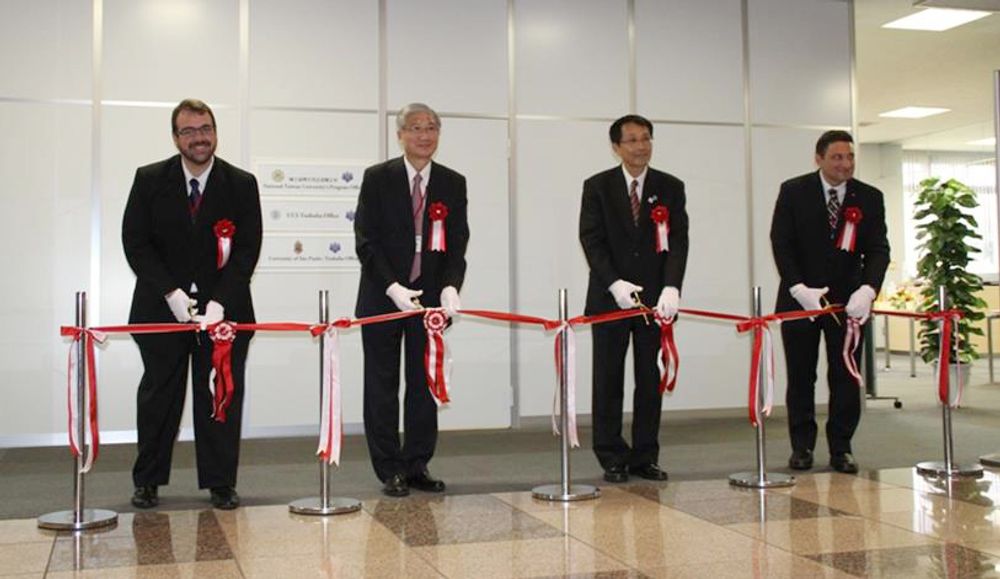 業經多年的努力、多次溝通、交流成果和今年二月第ㄧ屆臺灣大學與筑波大學聯合教員研究交流會議的促成,日本筑波大學於今年宣佈本校為其在全球化前瞻教育與研究創新之最重點結盟學校,並以「無邊界校園Campus in Campus概念」為亮點,於9月26日獲得日本教育部于國際交流項目每年四百萬美元,連續十年補助的Super Global 超級世界大學計劃:其中,我國立臺灣大學,與美國加州大學爾灣分校(University of California, Irvine)和法國波爾多大學(University of Bordeaux)並列為其超級世界大學策略的締盟夥伴。今年二月第ㄧ屆臺灣大學與筑波大學聯合教員研究交流會議期間,筑波大學永田恭介Kyosuke Nagata校長、阿江通良Michiyoshi Ae教育副校長、三明康郎Yusuo Miake研究副校長、木島讓次Joji Kijima國際策略室副長、大庭良介Ryosuke Ohniwa筑波在台辦公室主任等一行人特地安排、參訪了我校的教學發展中心,由周瑞仁主任率中心組長群接待,深切了解我校現行的教育政策方針和國際教育的推行,並大量運用於其擬定筑波大學全球化教育創新與Super Global計畫的合作大方向。為了落實並強化與本校的合作與聯結,筑波大學提出請求設立筑波大學-臺灣合作辦公室University of Tsukuba Taiwan Office,並邀請臺大於筑波成立海外合作辦公室,成為實質交流之在地行政資源與據點,更加速兩校之教育與研究合作。經由國際事務處大力協調、提案校行政團隊會議後,本校決定於生物技術研究中心成立筑波大學在台辦公室,並于今年7月24日,由Caroline F. Benton筑波大學國際副校長帶領其「全球策略措施辦公室Office of Global Initiatives」大根田修Osamu Ohneda主任及「全球創新聯學位計畫Global Innovation Joint Degree Program」熊谷嘉人Yoshito Kumagai總負責人等共九位教授,來台說明全球創新聯學位計畫與“點唱機學程 JukeBox Program”,並於26號舉辦了海外辦公室成立與揭牌儀式。