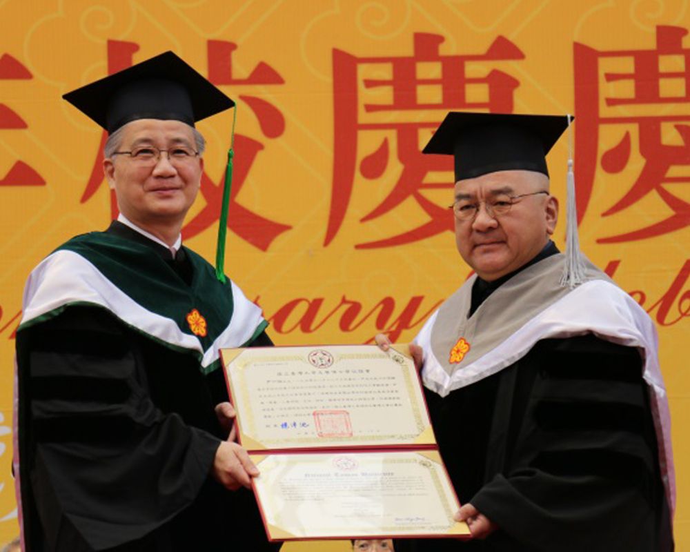 今年獲頒名譽博士學位者為楊振寧先生與尹衍樑先生。