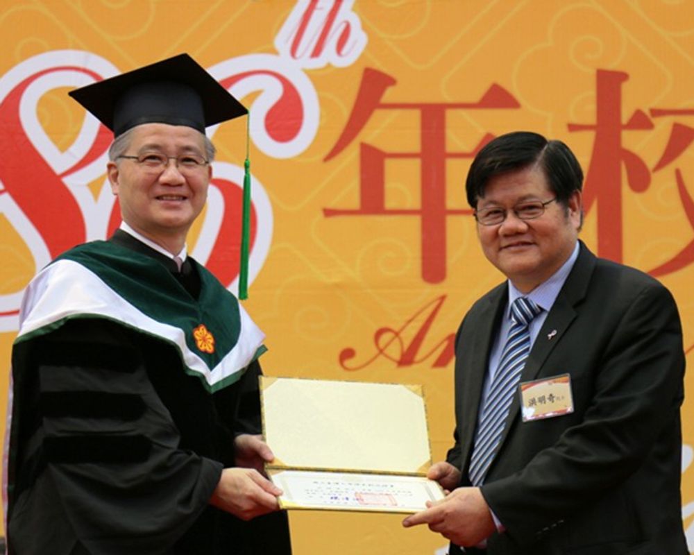 今年,頒授名譽博士學位給楊振寧先生及尹衍樑先生;傑出校友獎給白先勇、張照堂、黎念之、馬佐平、洪明奇、姚鴻澤、胡定華、駱錦明、陳錦煌等九位先生。本人謹代表臺大向二位名譽博士以及諸位傑出校友們在人文藝術、學術、工商業和社會服務各方面的傲人表現,致上最高的敬意。