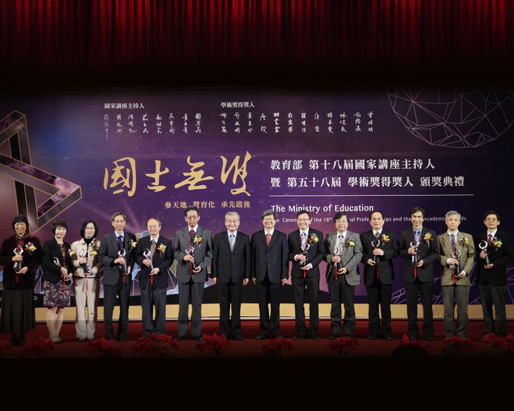 第 18 屆國家講座暨第 58 屆學術獎頒獎,本屆國家講座主持人 8 名,學術獎 12 名。本校榮獲本屆國家講座主持人:數學及自然科學陳榮凱、生物及醫農科學莊立民;學術獎獲獎人:人文及藝術鄭毓瑜、社會科學葉素玲心理學、數學及自然科學林金全。各獲獎人獲獎理由全文詳網頁: