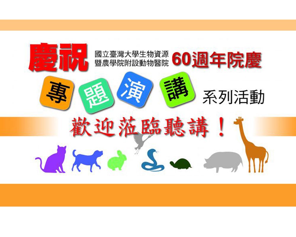 今年是臺灣大學附設動物醫院成立 60 週年,為慶祝 60 週年,動物醫院特舉辦為期一個半月的慶祝活動,其中有安排專業及一般民眾的多元演講(日期從 4 月 23 日起至 5 月 31 日止,詳細內容請上網 www.vh.ntu.edu.tw 搜尋),5 月 9 日舉辦慶祝茶會,結束後開放一般民眾參觀,醫院並提供導覽服務,歡迎有興趣的民眾前來,錯過了只怕要再等一甲子呢!