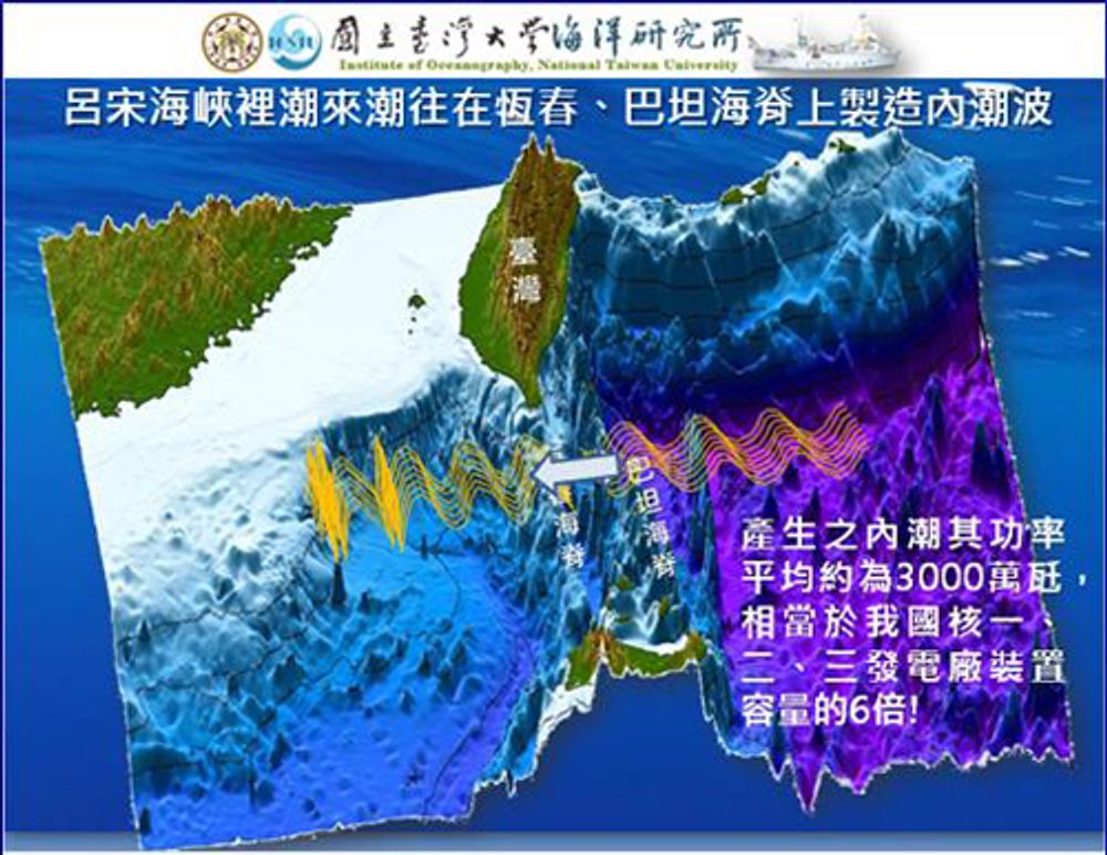共出動雙方的研究船計 87 航次前往南海進行探測研究。研究結果指出:當強大的潮流經過臺菲之間的呂宋海峽時,因海峽內有巴坦與恆春等兩座海脊,因而形成內潮波。此向西傳遞的內潮波之能量通量是一般開放海域的 100 倍,這也是目前已知全球海洋中最大的,而潮來潮往在呂宋海峽產生平均 3000 萬瓩的內潮波功率,相當於我國核一、二、三廠 2014 年全年發電容量的 6 倍。內潮波在南海海盆內會逐漸陡化,變成巨大內波,當其跑到東沙臺地前,因水深變淺、波速變慢、波長變短、振幅變大,進而變形、破碎、翻轉,最後消散,造成當地海洋生態莫大的影響。因此研究南海巨大內波的價值,除了科學方面外,亦包括海洋生物資源管理與國防安全,並可將其應用於海氣象數值模式預報,提昇預報品質。