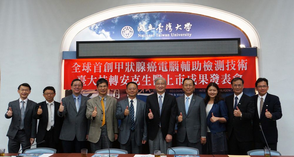安克生醫 2008 年由美吾華和懷特生技新藥兩家上市公司投資創立,是我國第一家電腦輔助偵測診斷軟體 (CAD) 高階醫材公司,研發上市的甲狀腺腫瘤篩檢產品「安克甲狀偵」,技術技轉自臺大醫學院及工學院團隊之研發成果。核心技術由本校醫學院張金堅教授、陳炯年教授及工學院陳正剛教授領導的功能性超音波研究團隊,在經濟部技術處學界科專計畫的補助下研發超音波 CAD 軟體,2009 年將技術移轉至安克生醫進行商品化,在臺大產學合作中心的協調下,校方亦透過技轉成為安克生醫公司的股東。