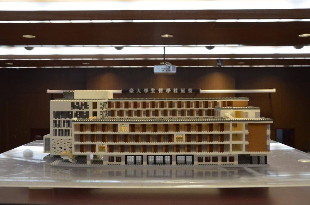 臺大藝術季《藝起同樂》活動中用樂高積木一磚一瓦堆疊起來的「人文大樓」模型,將建案過程的點滴血淚都搬上文學院演講廳的舞臺。