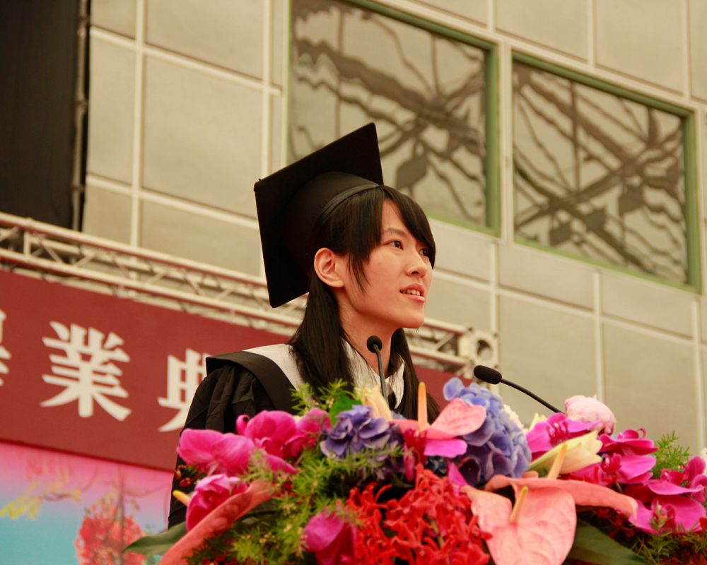 本屆畢業典禮特別邀請到中央研究院院士與史丹佛大學孟懷縈教授,同時也是創銳訊通訊公司(Atheros Communications) 創辦人,為畢業生獻上祝福與期許。孟懷縈教授致詞分享三個個人經歷,第一,體驗人生擴大你的胸懷;第二,離開熟悉的環境,接受挑戰;第三,平等對待所有的人,尤其是和你不同的人。台灣目前面臨很多困境,但這些困境正是大展身手的好機會。不要把自己局限在台灣和大陸之間,全世界都是你的舞台。你將會面對無數的競爭和挑戰,也正是因為有這麼多競爭的機會和對手,收穫也將更豐碩。