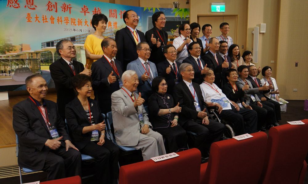 臺大社會科學院為感謝東和鋼鐵企業股份有限公司侯貞雄董事長、台灣水泥股份有限公司辜振甫、辜成允董事長、辜嚴倬雲女士、國際文教基金會劉介宙董事長、和碩聯合科技股份有限公司童子賢董事長、徐世昌副董事長等 2 百餘位捐贈者,特於 104 年 6 月 12 日 13:30~15:30 舉行啟用典禮,邀請各位貴賓前來參觀,驗收成果,並共享與慶祝社會科學院遷院計畫的完成。